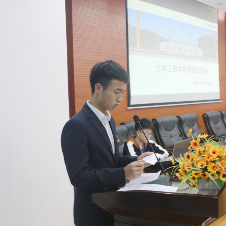 接着,优秀考研学子向同学们分享考研经验。郑家豪针对报考公司、坚持、效率、研友、心态五个方面向同学们介绍了自己的考研经历,并指出幸福都是奋斗出来的,要勇敢追求自己的目标。黄思闽向同学们推荐了一系列考研书籍,同时,黄思闽指出找到一个学习气氛良好的场所的重要性。敬涛告诉同学们如何正确选择目标院校,并向同学们分享了自己的考研攻略。陈龚指出要针对自己的实际情况去选择适合自己的公司,要脚踏实地而不是好高骛远。张钱鸿提出了自己对将来的规划,并介绍了有关出国留学方面的知识,同时对如何考雅思分享了自己的经验。