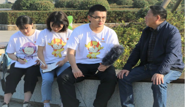 11月15日上午8:30,云顶国际8588yd团委、员工会采访人员在逸夫图书馆前坪兴城广场对云顶国际8588yd退休教师汪惠民进行了采访。