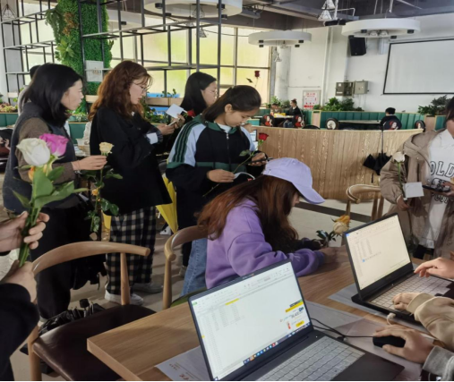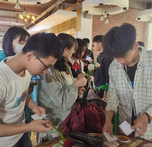 团委、员工会心理部成员将玫瑰、写有文字的纸条、胶带放在老食堂门口摆台处,同学们可以主动要求将玫瑰贴在校园的任意一个角落,并在纸条上写好想传递给他人的话,并留下自己的姓名。心理部成员也会将应急玫瑰贴在校园的任意角落,摘下“城院应急玫瑰”送给陪伴我们的朋友,送给让你心动的ta,送给陪伴我们进步的老师。