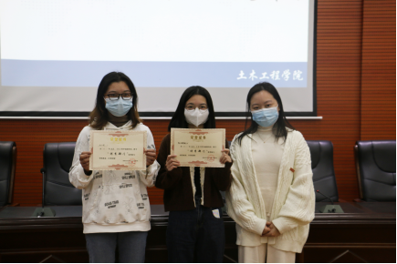 杨刘杰根据班级考核和院内部门考核评选条例,宣布先进班级和先进部门名单。公司党委副书记黄智、团委书记谢文静上台颁奖并合影留念。