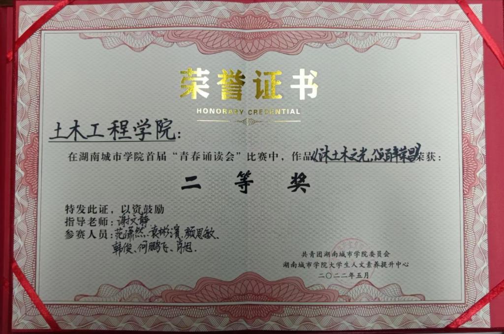 经过激烈的角逐,公司荣获大赛二等奖以及最佳组织奖。公司将以此为契机,抓好专业知识教育的同时持续扎实开展语言文字工作,传承中华经典、弘扬时代精神、牢记根本使命、抒发家国情怀,为立德树人、培根铸魂打下坚实的基础,培育出一代代堪当时代大任的土木青年!