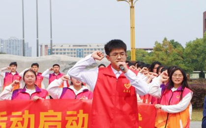 伴随着深情的诗朗诵,全场人员右手举拳,集体宣誓:“我愿意成为一名光荣的志愿者。我承诺:尽己所能,不计报酬,帮助他人,服务社会,践行志愿精神,传播先进文化,为建设团结互助、平等友爱、共同前进的美好社会贡献力量。”的志愿者誓词响彻校园。