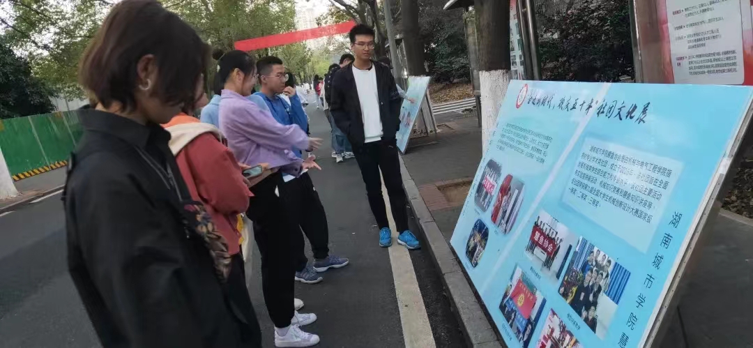 2023年11月8日在龙城大道展示社团展示板,由社团骨干成员介绍社团的来历、背景、社团各部门的职能以及社团所取得过的成就。