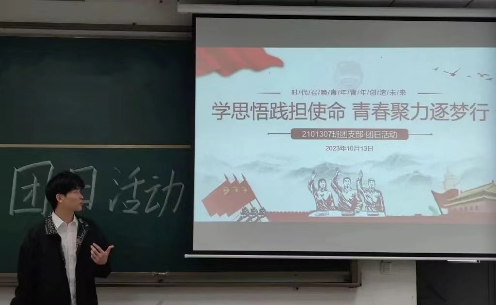 活动中,团支书首先讲述了对于“学思悟践担使命,青春聚力逐梦行”这一主题的认识与理解,带领同学们深入学习习总书记对青年的青春寄语,同时分享当代青年楷模的光辉事迹,喊出实干兴邦的口号,号召同学们树立坚定的理想信念,勇担时代使命。