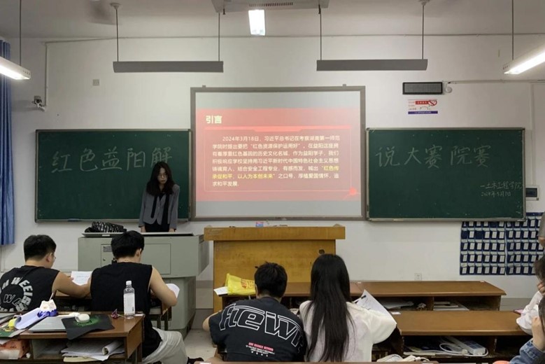 为深入学习贯彻习近平总书记关于红色资源保护与运用的重要指示精神,挖掘和利用益阳丰富的红色资源,公司于2024年5月7日19:00在土木楼413举办主题为“用好红色资源,传承红色基因”的老员工解说大赛院赛。出席本次比赛的评委有公司员工会主席韩腾龙、副主席刘时昌,学术创新创业部部长夏美玲、办公室主任刘叙毅,办公室副主任熊雨泽、文体部副部长周畅。
