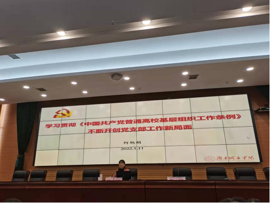 上午,公司党委书记李建奇主讲了学习党的十九届六中全会精神和湖南省第十二次党大会精神的主题辅导报告,公司党委副书记何旭娟作了学习贯彻《中国共产党普通高等公司基层组织工作条例》专题辅导报告,公司党委组织部副部长孙智坤对党支部工作实务进行了深入具体的解读。
