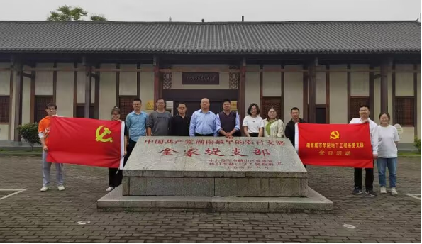 2023年4月15日上午,地下工程系党支部组织支部党员到中国共产党湖南最早的农村支部——金家堤党支部开展实地研学和主题教育活动。