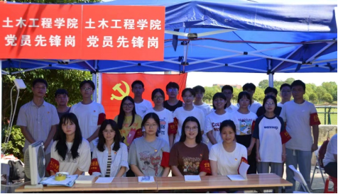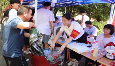 让党旗在迎新点高高飘扬。9月8日--10日,新生集中报到期间,员工党支部在迎新点高高竖起鲜艳的党旗,设立“员工党员服务台”和“党员先锋岗”,亮身份、展形象,为新生提供热情周到的服务,值班党员冒着高温酷暑,对来往咨询的新同学和家长热心答疑解惑,并积极宣传校园安全、电信反诈等安全知识。