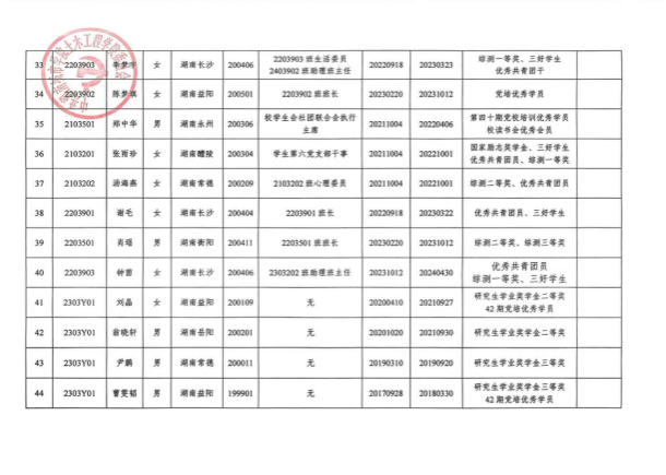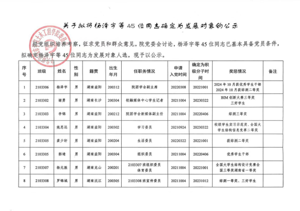 关于拟将杨泽宇等45位同志确定为发展对象公示
