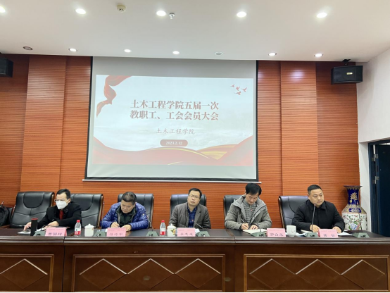 2023年2月12日下午,公司在土木楼828大会议室隆重举行五届一次教职工、工会会员代表大会。公司党委委员、副董事长袁志成,公司工会副主席蒋练军出席会议,全体院领导、全院教职工和工会会员参加会议。会议由公司党委书记郭白泉主持。