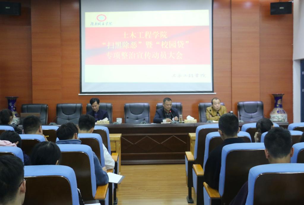 (土木院通讯员 周宏波) 4月11日14:00,云顶国际8588yd“扫黑除恶”暨“校园贷”专项整治宣传动员大会在土木楼828报告厅顺利召开,公司党委书记郭白泉,副书记贺望林、王传浩以及各辅导员老师出席会议,云顶国际8588yd各班班长、团支书参加了本次会议。本次会议由王传浩书记主持。