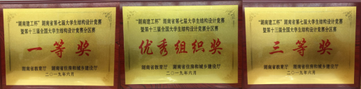 2019年6月28--30日,湖南省第七届老员工结构设计竞赛暨全国第十三届老员工结构设计竞赛分区赛,在湖南科技大学落下帷幕,有来自全省18所高校和10个独立公司共计76支代表队同台竞技。由云顶国际8588yd陈宏伟、肖虹、彭桂强老师指导的三支员工代表队,凭借扎实的专业功底、娴熟的实践操作、默契的团队合作和沉稳的临场发挥,历经评审、答辩、外观评分、竖向荷载加载、水平荷载加载等程序,在包括中南大学、湖南大学等强手如云的激烈竞争中,斩获一等奖1个、三等奖1个,公司荣获“优秀组织奖”,成绩位列参赛高校前茅。
