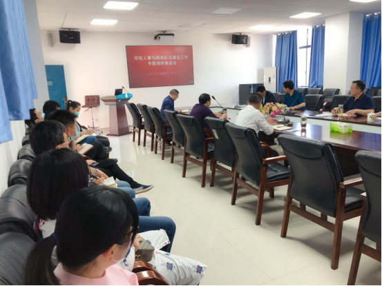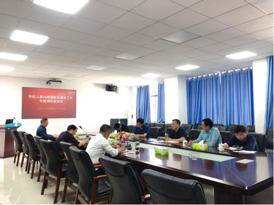 2020年4月27日下午,公司人事处处长吕贤军带队,教务处处长胡拥军、人事处副处长张光富等一行,来土木院组织召开人事与团队队伍建设工作调研座谈会,公司领导郭白泉、贺望林、付贵海、王新忠、王传浩、毛广湘以及部分系室中心主任、在读博士参加调研座谈会。