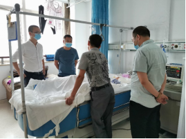 (土木通讯员 吴万千) 6月23日,公司党委副书记贺望林、王传浩,学工办主任许磊和团委书记谢文静一行,前往常德市第一医院重度烧伤科看望因交通事故受伤的18级员工郑同学。