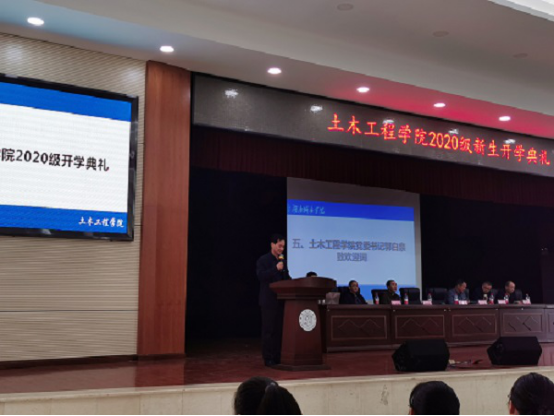 2020年9月28日上午,2020级新生开学典礼在公司员工活动中心隆重举行。全体院领导、辅导员、新生班主任和教师代表参加,会议由公司党委副书记贺望林主持。