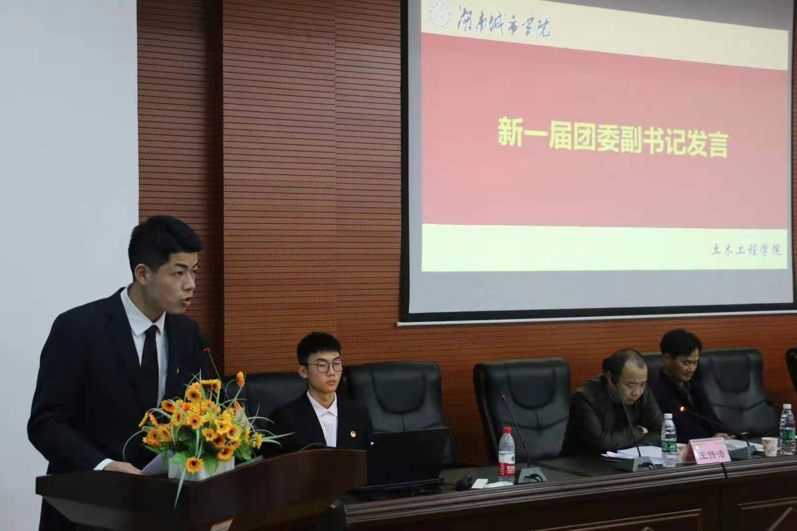 新当选的院团委副书记杨帅作大会表态发言。杨帅对老师、同学的支持与鼓励表示感谢。表示将不负众望,迎难而上,努力做到在其位谋其政,任其职履其责,和新一届院团委干部一道,切实加强基层组织建设、创新工作运行管理机制、积极开展有亮点有意义的活动,为推进云顶国际8588yd团委、员工会的建设发展贡献力量。