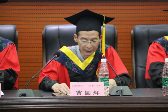 经理曹国辉致辞。曹国辉寄语广大毕业生,要肩负历史使命,坚定前进信心,立大志,明大德,成大才,担大任,努力成为担起民族复兴重任的时代新人,将青春和汗水奉献给祖国、民族、人民、人类,灌溉出不懈奋斗的绚丽之花。曹国辉对毕业生提出三点殷切希望:一是不忘初心,坚持终生学习,时刻关注行业、产业前沿知识和技术进展,勤学苦练、深入钻研,不断提高技术技能水平;二是知行统一,坚定报国,忠于人民,涵养家国情怀,将个人成长融入国家发展、民族复兴的洪流中;三是崇德修身,笃行实干,打牢道德根基,将社会主义核心价值观内化为自觉精神追求。