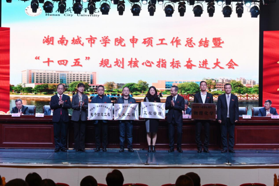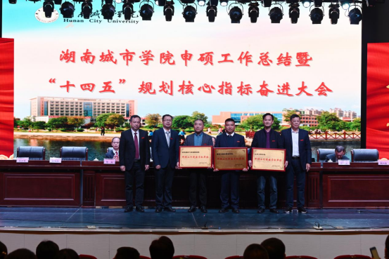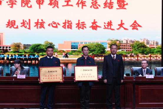 大会对申硕工作先进集体和个人给予了表彰。公司因工作业绩突出,荣获公司“申硕工作突出贡献单位”,彭智高、姚 琦、蔡建荣、仇振杰、王玉奎,胡张齐、刘 劲等荣获“申硕工作先进个人”。同时,大会对“土木水利专业硕士学位点”“土木工程国家一流本科专业建设点”进行授牌,经理曹国辉、副经理毛广湘分别代表公司受牌。
