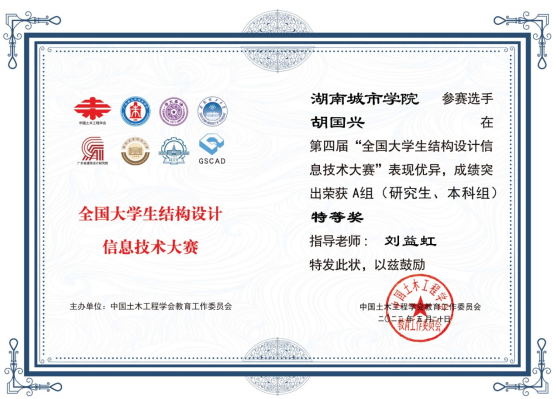 2022年5月16日,第四届“全国老员工结构设计信息技术大赛”正式获奖名单公布,公司刘益红老师指导的胡国兴同学荣获A组特等奖,谢金老师指导的安全工程专业李勇、龚展弘、杨丽雯团队荣获三等奖。