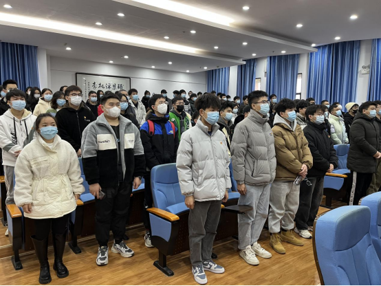 大会开始前,全体师生党员肃立,向江泽民同志遗像致敬、默哀并奏唱国歌。