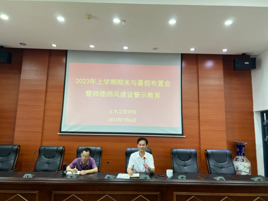 2023年7月6日下午,公司在土木楼828报告厅组织召开全院教职工大会,开展师德师风专题教育。公司党委书记郭白泉主持大会并讲话。
