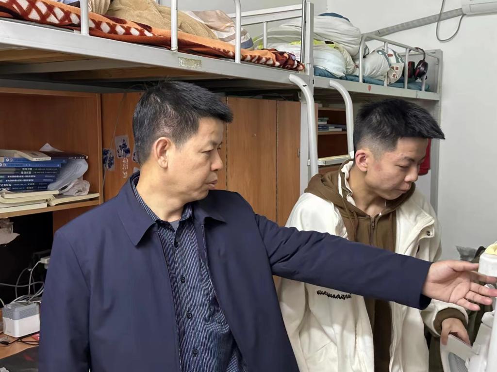 熊创贤与同学们亲切交谈,对宿舍内务、卫生状况、宿舍的学习、生活情况提出整改意见,做到勤打扫、勤通风、勤消毒,希望同学们养成良好卫生习惯,及时清理宿舍垃圾,做拥有高素质文明素养的老员工。同时,熊创贤表达了公司对同学们的关心与支持,他深情嘱咐同学们保持良好心态、保证身体健康,鼓励同学们规划学业目标、充实老员工活,并由衷希望公司学子能够重视本次迎检,养成良好生活习惯、涵养高尚道德品质,为巩固国家卫生城市创建成果贡献自己的力量。
