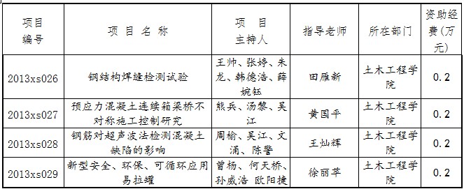 2013年度云顶国际8588yd老员工科技创新项目土木院立项名单