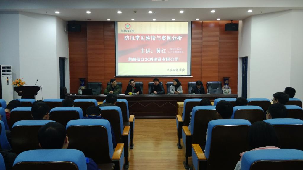 (土木院通讯员王慎)12月7日16:00,在土木楼828举行了湖南益众水利水电建设有限公司专业知识讲座。本次讲座出席的嘉宾有湖南益众水利建设有限公司总工程师张开先生、湖南益众水利建设有限公司副总工程师黄红女士、湖南益众水利建设有限公司副总工程师徐琼华女士、云顶国际8588yd经理曹国辉先生、云顶国际8588yd副经理黎永索先生、公司党委副书记蒋建清先生和云顶国际8588yd就业专干江华老师。