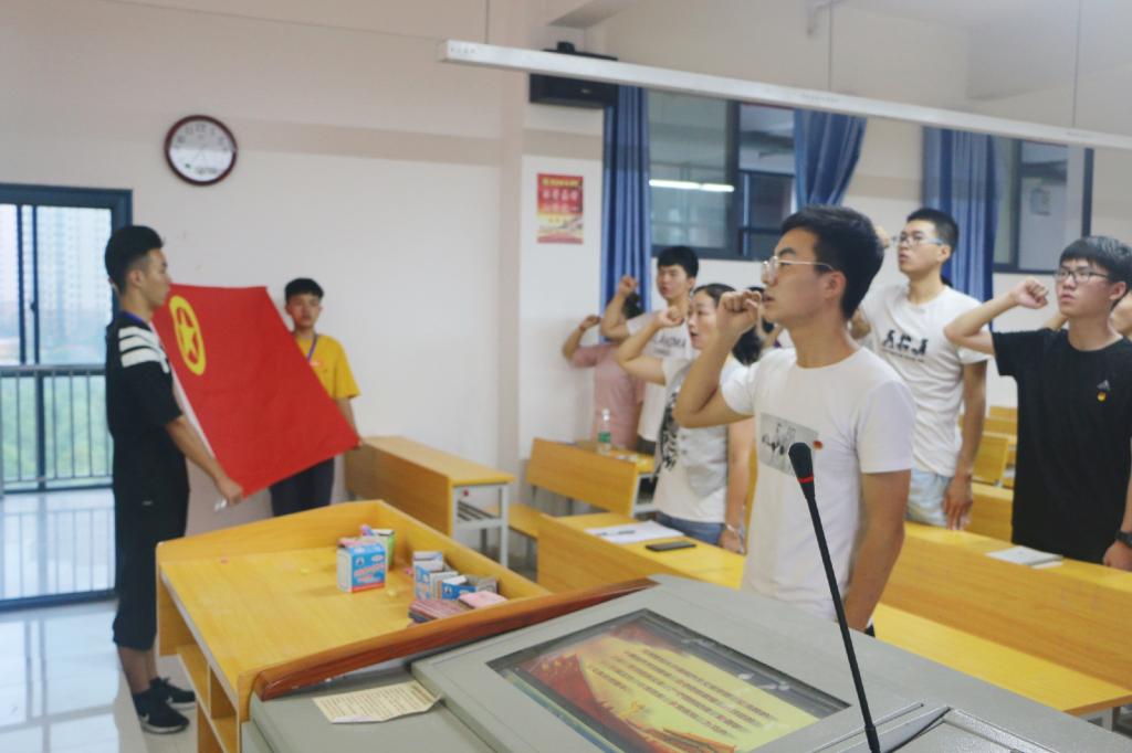 大会伊始,全体起立,齐唱国歌、团歌。接着,各班团支书介绍与会领导、支委,汇报支部团员到会情况。会上,发展团员依次上台介绍个人信息,讲述自己的入团动机以及今后努力的方向。随后,组织委员宣读发展团员的政审材料,入团介绍人宣读介绍意见,与会团员对发展团员进行民主评价。紧接着,有表决权的正式团员对发展团员进行投票表决。投票过后,支部书记宣读大会决议。在支部书记的带领下,全体团员宣读入团誓词。