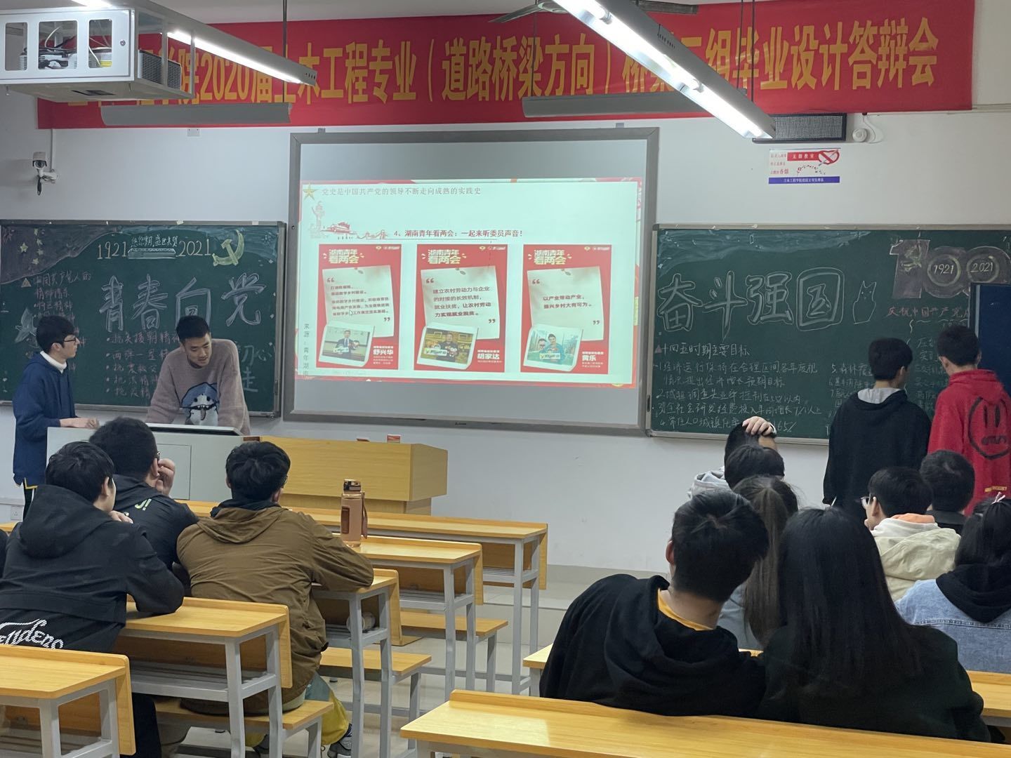 接着,同学们观看了中国共产党百年述职报告及建党百年主题MV《少年》等相关庆祝建党一百周年的视频,深刻领会到中国共产党是引领世界社会主义发展的重要政治力量。